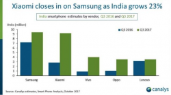 據國際市場調查機構 Canalys 給出最新的智能手機數據報告,報告稱2017年第三季度,印度智能手機出貨量達到了4000萬部,同比增長23%,印度首次超越美國,成為全球第二大的智能手機市場。在印度市場,三星和小米佔據前兩名,出貨量分別為940萬、920萬部,兩者加起來已經佔據市場近一半的份額。 HKD$10 贊助 Android-HK HisTre...... [閱讀更多]