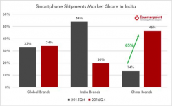 2016年Q4季度印度手機出貨量報告,三星佔據首位