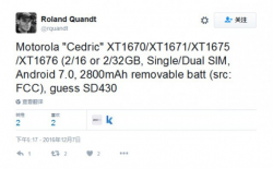Friday, December 9, 2016 9:49 pm, Posted by Eric Wong | 新聞訊息 日前,據德國媒體WinFuture 曝光的消息稱,Moto 內部正在研發一款代號為Cedric的新機,具體型號為XT1670/71/75/76,據悉這款神秘新機有可能就是入門級手機Moto C。從曝光的數據來看,Mo...... [閱讀更多]