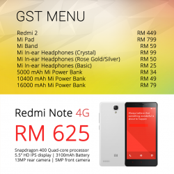 就在剛剛,小米突然在其官方面子書上宣布,自4月1日起實行消費稅後,紅米Note 4G售價將從目前的589令吉調整至625令吉。 不過,好消息是其他小米產品將保持原價。 想入手紅米note 4G的童鞋可要在4月1日前趕快行動了! 發表意見 ... [閱讀更多]