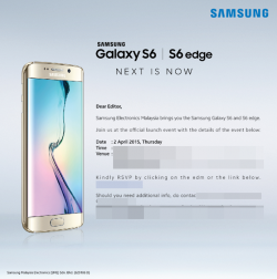 三星發邀請函:4月2日發布Galaxy S6及S6 Edge