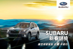 歲末年終將至,Subaru將於送舊迎新之際推出「Subaru新春健檢」,與每一位車主共同迎接美好的2021年,更將用心款待您的愛車,讓車況維持在最佳狀態。「Subaru新春健檢」自2021年1月2日至2021年2月10日實施,凡於活動期間預約回廠即享五大系統免費健檢服務,由專業技師團隊為您的愛車嚴格把關輪胎、煞車、底盤、車電、引擎等...... [閱讀更多]
