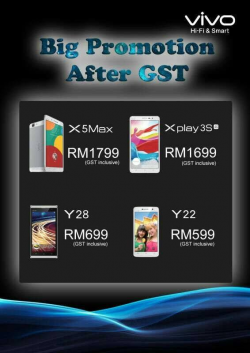 前些日子vivo 已經宣布GST 實行后,所有的產品都不會起價,如今傳來更加好的消息,那就是將有3款vivo 手機降價,分別為Xplay 3S,Y28與Y22。 Xplay 3S 原價是RM 1899 降價後為RM 1699 Y28 原價是RM 899 降價後為RM 699 Y22 原價是RM659降價後為RM599 vivo粉絲是否感到非常感動呢? ...... [閱讀更多]