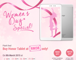配合38婦女節的到來,Honor Malaysia 推出了一系列的優惠,其中以RM 38 售賣Honor Tablet為最大亮點。優惠將在3月8日當天開始,分為四個時段,分別為12.38pm, 3.38pm, 6.38pm 和 9.38pm,而每個時段Honor都會放出3部Honor Tablet 3G版本以低至RM 38的售價開賣。(看來一天...... [閱讀更多]