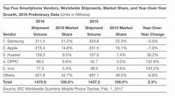 Friday, February 3, 2017 10:37 am, Posted by jayng | 新聞訊息 雖然去年三星 Galaxy Note 7 回收事件,令到三星的收入大幅下跌,不過看來這沒有對三星的地位有太大的影響。據 IDC 的報告顯示,在去年的第四季中,蘋果的出貨量雖然得到第一名,不過三星還是成為了 2016 年全年...... [閱讀更多]