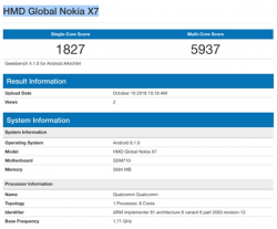 Nokia X7現身Geekbench跑分網:驍龍710處理器+6GB RAM!單核跑分1827;多核跑分5937!