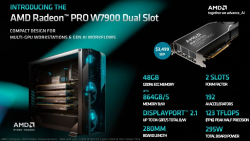 AMD推出雙卡槽設計的Radeon PRO W7900 Dual Slot,對應自動生成式人工智慧運算需求強調提供更高每美元效能提升表現