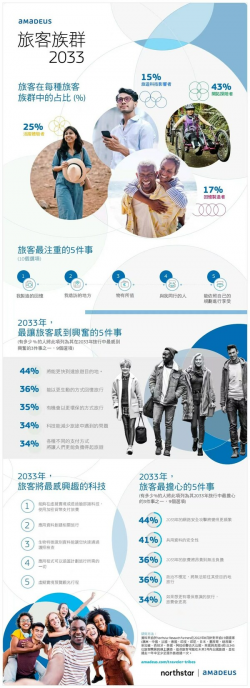旅遊正在改變:2033年的你會成為活躍體驗者,或是旅遊科技影響者? 由旅遊科技公司Amadeus委託全球研究機構 Northstar Research Partners調查彙整的報告定義出四類新的旅客特質 – 旅客族群 – 將在未來十年成為趨勢 這份呈現未來旅客特質的全球調查,是針對15個市場超過10,000名旅客、專家訪談及580萬個資料點,並運用心理變數區隔技術編...... [閱讀更多]