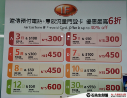 去台灣旅行,要買什麼電話卡才可以無限上網呢?這次 Stone IP 前往台灣之時也就選擇了「遠傳」,其中一個原因就是跟大家好好的分享一下,把台灣桃園機場提供的三個電訊商方案告訴大家。當中石先生選擇的也就是七天 NT$450 的計劃。 如果你不想要「遠傳」也可以選擇「台灣大哥大」的方案,這是是最多香港人排隊的,分 3-5 天、6-10 天、1 個月及半年的方案,,均提供無限量上網容...... [閱讀更多]