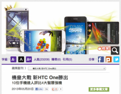 台灣《蘋果日報》評比 HTC One、Sony Xperia Z、Samsung Galaxy S4 及 Asus PadFone PadFone Infinity