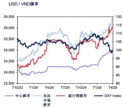 越南國庫持續加大外匯買入力度,同時企業對外匯的需求上升,造成儘管美元在國際市場走弱,但4月份美元兌越南盾(USD/VND)匯率仍呈上升趨勢 台灣商務新聞網(tpnews)引述越南財經新聞報導,在最新公布的貨幣市場報告中,MBS(MB證券公司)指出,受到關稅戰影響,美元指數(Dollar Index – DXY)在整個4月持續大幅下跌。在此背景下,美元指數(DXY)於今(2025)4...... [閱讀更多]
