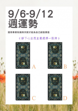 【未來研究室文章授權】讓自己在他人心中建立一個可靠且專業的形象,運用你的專業知識以及天賦長才,你能為世界提供許多協助並為自己創造價值。靜下心,憑直覺選擇一張牌: 選A的人機會只給準備好的人,樂觀積極是取得機會的重要指標。若是上週覺得生活無趣或是沒有目標的人,這周會有新的計畫、目標、方向和新的機會出現,你也會在這周感覺到活力以及希望,雖然新的事物到來總會伴隨著挑戰...... [閱讀更多]