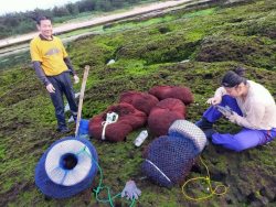 圖說:漁民採集石花菜(圖片來源:新北市政府漁業及漁港事業管理處) 〔新北市新聞〕北海岸沿線的潮間帶,農曆3月後至夏秋盛產之際,退潮時常可看到許多漁民及婦女,穿著雨鞋,戴著斗笠,或著潛水裝穿梭在海岸邊採集,擇寬廣空地曝曬如紅寶石般的石花菜,後以「六泡六曬」方式反覆利用淡水清洗程序漂白去腥,去除雜質、鹽分及腥味後,加以熬煮並冷卻後形成清涼美味的石花凍,是仲夏北海岸極富特色...... [閱讀更多]