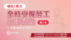 圖說:勞動部全時受僱勞工發給生活補貼懶人包(圖片來源:勞動部) 為協助疫情警戒標準提升至第三級後,薪資相當程度受到影響的全時受僱勞工,勞動部於今(8)日發布「勞動部因應嚴重特殊傳染性肺炎影響辦理受僱勞工生活補貼計畫」。針對今(110)年4月30日已參加就業保險,且月投保薪資在24,000元(含)以上至34,800元(含)以下,其5月或6月全月薪資較4月份受僱於同一僱主...... [閱讀更多]