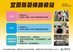 圖說:部落核酸檢驗全數陰性 籲請遵守各項防疫措施(圖片來源:宜蘭縣衛生局) 〔宜蘭縣新聞〕今(30)日宜蘭增加1例確診個案,縣府已進行相關個案的追蹤管理。縣長林姿妙表示,日前針對部落民眾進行核酸篩檢,1096人全數為陰性,請大家安心,但仍請縣民持續遵守各項防疫措施,做好健康管理,為防疫盡一份心力。 圖說:「自我健康監測」注意事項(圖片來源:宜蘭縣衛生局) ...... [閱讀更多]