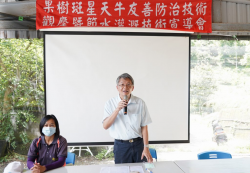 圖說:盧柏松副場長主持觀摩宣導會(圖片來源:行政院農業委員會臺東區農業改良場) 〔台東縣新聞〕行政院農業委員會臺東區農業改良場為防治斑星天牛對果樹危害、降低果農損失,同時因應近日乾旱,加強宣導果樹節水灌溉技術,於110年5月6日上午在臺東縣成功鎮富榮晚崙西亞產銷班,舉辦「果樹斑星天牛友善防治技術觀摩暨節水灌溉技術宣導會」,將相關技術介紹予農友,現場吸引來賓及農友,約3...... [閱讀更多]