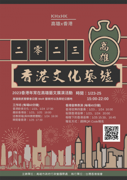 圖說:2023香港年宵在高雄藝文展演活動 (圖片來源:高雄市政府) 今年過年,想在高雄體驗香港文化嗎?2023香港年宵在高雄藝文展演活動由高雄市政府行政暨國際處主辦、台灣香港協會執行,時間為1月23日至25日,每日15時至22時,地點在衛武營藝術村-WeR及周邊鄰近公園,邀請大家來感受香港文化。 活動主要為提升台灣和香港文化之交流,並提供在台港人重溫家鄉年節氛圍,...... [閱讀更多]
