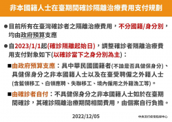 2023年1月1日起,不具健保身分之非本國籍人士在臺期間確診COVID-19,需自付確診隔離治療費用 -