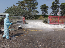 圖說:鴨場消毒 (圖片來源:屏東縣政府) 屏東縣動物防疫所為管控強化鴨隻家禽流行性感冒﹙禽流感﹚,派員前往飼養場採樣監測,於11月15日在高樹鄉1場肉鴨場檢體確診H5N2亞型(b分支)高病原性禽流感,即依標準作業程序啟動防疫機制,赴該場執行撲殺作業,於高樹鄉養鴨場撲殺1,350隻(34日齡)肉鴨。並督導業者完成場區清潔及消毒工作,降低疫情傳播風險。另已同步啟動該場半徑...... [閱讀更多]