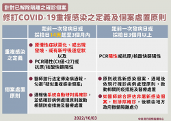 圖片來源:中央流行疫情指揮中心 中央流行疫情指揮中心3日表示,為因應國內疫情變化及防治實務之需,經諮詢專家,修訂「COVID-19重複感染(reinfection)定義及個案處置原則」如下: 圖片來源:中央流行疫情指揮中心 一、COVID-19重複感染定義及處置: (一)距前一次發病日或採檢日14天起至3個月內,如原慢性症狀惡化、或出現發燒或...... [閱讀更多]
