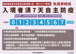 因應邊境逐步開放,指揮中心預為規劃入境者免除居家檢疫措施,將採7天自主防疫,並視疫情發展決定實施日期 -