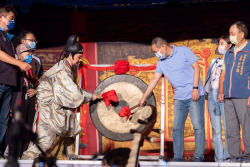 (圖說:侯友宜市長與扮演唐太宗的唐美雲共同鳴鑼宣布天鵝國宴開席。圖片來源:新北市政府) 新北市政府8月起舉辦「111年巷弄藝起來」巡演活動,市長侯友宜9晚前往新莊區運動公園陽光草坪,欣賞國家級藝文團隊「唐美雲歌仔戲團」金鐘鉅作「天鵝宴」,與扮演唐太宗的唐美雲共同鳴鑼宣布天鵝國宴開席,與市民朋友一同歡慶中秋佳節。 侯友宜提到,新莊過去有「一府、二鹿、三新莊」的盛名,...... [閱讀更多]