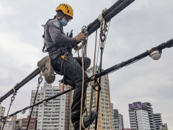 (圖說:運用高空蜘蛛人作業檢測碧潭吊橋垂吊索穩定性。圖片來源:新北市政府) 人要做健檢,高齡80多歲的古蹟碧潭吊橋(古稱「碧橋」)一樣要做健檢,新北市政府觀光旅遊局採用高科技的檢測技術來為碧潭吊橋量身打造健檢項目,相位陣列超音波(PAUT)法、敲擊迴音法等高科技儀器引入,歷經149天的健檢工作終於近日完成,更完整且全面的健檢結果顯示結構安全無虞,讓每位踏上弔橋的民眾及...... [閱讀更多]