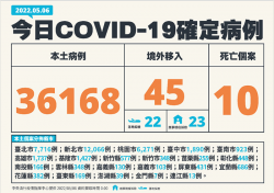 5/6新增36,213例COVID-19確定病例,分別為36,168例本土及45例境外移入 - TPN 台灣商務新聞網