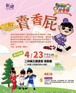(圖說:四月二十三日下午三點,由小青蛙劇團演出賣香屁。 圖片來源:彰化縣政府) 「彰化囝仔好幸福─111年兒童劇鄉鎮巡演活動」第8、9場將於4/23(六)、4/24(日)下午3點分別在二林鎮立圖書館演藝廳及田中國小開演囉! 4/23(六)下午3點邀請「小青蛙劇團」演出《賣香屁》,劇情描述忠厚老實的阿福吃下黑豆後放的屁是香噴噴,而香香的屁竟然治好了縣官大人長年...... [閱讀更多]