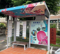 測量外業結合客家花布 東勢地所打造客家風采候車亭 -