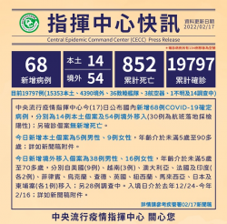 2/17新增68例COVID-19確定病例,分別為14例本土及54例境外移入 - TPN 台灣商務新聞網