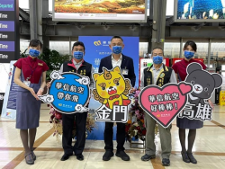 圖說:華信航空新闢高雄-金門航線昨日首航,縣長楊鎮浯跨海前往高雄機場共同見證歷史的一刻 (圖片來源:金門縣觀光處) 〔金門縣新聞〕華信航空新闢高雄-金門航線昨日首航,縣長楊鎮浯在高雄市金門2同鄉會理事長陳德順和黃根寶邀約下,一早即率觀光處長丁健剛一行抵達高雄機場共襄盛舉,除了祝賀新航線開通順利和見證歷史的一刻,考量疫情因素,華信現場僅安排簡單的拍照慶祝活動,並於班機起...... [閱讀更多]