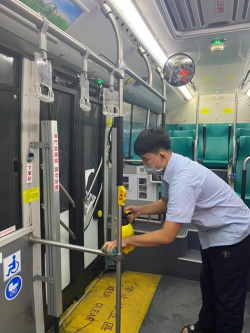 因應疫情升溫,交通局要求高雄市市公車、捷運、輕軌、渡輪、計程車、YouBike2.0及共享運具等公共運輸系統業者比照三級警戒嚴陣以待,全面強化防疫作為。 圖片來源:高雄市政府交通局 近期Omicron病毒疫情持續升溫,為提供市民安全的公共運輸環境,市府交通局要求全市7家公車業者,比照三級警戒模式,全面提升公車防疫措施,針對車內民眾較常碰觸之驗票機、票箱、扶手、拉桿...... [閱讀更多]