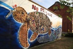 圖說:「海龜NO PLASTIC」海廢藝術 (圖片來源:嘉義市環保局) 為落實減塑生活,環境永續的實踐,嘉義市政府環境保護局特於臺灣設計展期間(110年12月24日至111年1月2日)於嘉義文化創意產業園區內「太陽能示範點-北極熊的窩」涼亭背面展示由「海湧工作室」打造「海龜NO PLASTIC」海廢藝術,牆面上素材皆為淨灘蒐集,可看見塑膠碎片、塑膠瓶蓋、寶特瓶、手搖杯...... [閱讀更多]