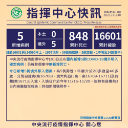 11/30 新增5例COVID-19境外移入確定病例 - TPN 台灣商務新聞網