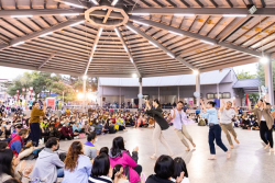 圖說:數百名民眾齊聚欣賞雲門舞集的精采演出(圖片來源:台中市政府) 「國泰藝術節–與雲門共舞」系列演出13日在纖維工藝博物館旁的國光里活動中心舉辦,雲門舞者不在舞台上,而是在觀眾身邊起舞,並邀請現場大小朋友一起舞動,與民眾一同親近舞蹈,讓觀眾相當有參與感,氣氛歡樂。 文化局長陳佳君出席活動表示,很高興有這麼好的節目來到台中市,給鄰近的住戶、小孩有機會接觸表演藝術,...... [閱讀更多]