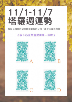 【未來研究室文章授權】 為自己做個心靈的淨化,利用獨處的時間整理內心感到混雜的事件與情緒,讓生活過得更加輕鬆自在。靜下心,憑直覺選擇一張牌: 選A的人 人不是萬能的,可一旦對自己失去信心,那所有的可能性也將離你遠去。這週會被自己魯莽行事的結果打擊,你以為的勝算其實在旁人眼裡可能是漏洞百出的決定,只因自己過於自信忽略了小細節。你需要重整旗鼓克服自己的黑暗面...... [閱讀更多]