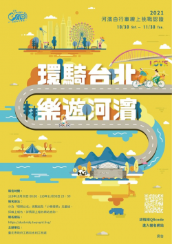 圖說:環騎台北樂遊河濱(圖片來源:台北市政府) 台北市政府水利工程處今年首度舉辦「環騎台北」河濱自行車挑戰認證,只需備妥自行車及手機,沿著本次規劃路線集滿12處打卡點,就完成環繞台北一圈的壯舉! 「環騎台北」河濱自行車挑戰認證,採網路報名,無限制年齡(需擁有手機門號註冊帳號),民眾可隨時自由參加;而歷年廣受親子好評的「小鴨慢騎」,也併同本次挑戰認證活動一起...... [閱讀更多]