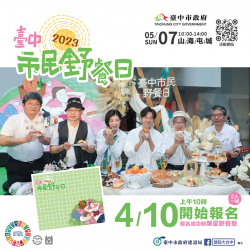 大受好評的台中市民野餐日來囉!2023「台中市民野餐日」5月7日將於中央公園、葫蘆墩公園、鰲峰山公園、坪林森林公園4地同時登場,4月10日上午10時開放網路報名,上網登記的民眾有機會獲得市民野餐日專屬野餐墊,報名以2人為1組,中央公園報名野餐的前1,500組;豐原葫蘆墩公園、太平坪林森林公園或清水鰲峰山公園報名野餐的各前600組,可獲得紀念野餐墊,歡迎市民朋友踴躍報名。 圖說:20...... [閱讀更多]