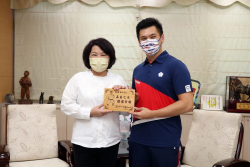 圖片來源:嘉義市政府 嘉義子弟王翌達代表中華民國參加2020年夏季奧林匹克運動會空手道男子個人型項目,今(23)日王翌達返鄉並拜會市長黃敏惠,黃敏惠市長特別致贈檜木雷雕等禮物,感謝王翌達的努力成為嘉義之光、台灣之光,王翌達也回贈棒球簽名球,感謝市長及嘉義市鄉親為他加油! 市長黃敏惠表示,四年一屆的奧運因疫情延至今年舉辦,對舉辦國、參與國以及選手都是極大的挑戰。王翌...... [閱讀更多]