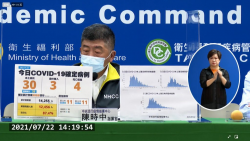 圖說:中央流行疫情指揮中心記者會(圖片來源:疾管署) 中央流行疫情指揮中心今(22)日公布國內新增33例COVID-19確定病例,分別為30例本土及3例境外移入;另確診個案中新增4例死亡。 指揮中心表示,今日新增之30例本土病例(其中20例為居家隔離期間或期滿檢驗陽性者),為15例男性、15例女性,年齡介於未滿5歲至70多歲,發病日介於今(2021)年7月17日至...... [閱讀更多]