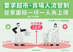 圖片來源:高雄市政府 高雄市為強化防疫,繼市場實施人流管制及身分證分流後,市長陳其邁今(2)宣佈賣場、超市也將實施人流管制措施,包含好市多、全聯、家樂福、美廉社、頂好、小北等營業場所均以營業面積一坪一人為容留上限,以利消費者保持社交距離。高雄市經發局長廖泰翔呼籲業者、消費者應配合落實、齊心防疫。 高雄市經發局長廖泰翔表示,室內空間因應防疫需維持2公尺社交距離,換算...... [閱讀更多]