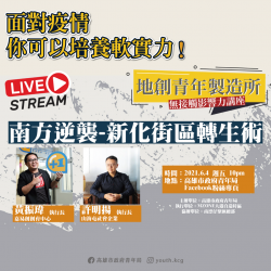 「宅在家,依然變行家!」全民居家抗疫期間,高雄市政府青年局轄下的自造者空間M.ZONE大港自造特區,特開辦線上青年培力講座,首波推出「地創青年製造所」系列,線上開講帶你揭開在疫情影響之下,如何開創在地連結與行銷之路,為地方注入活水,本周五(4)日晚上10時在青年局粉專準時上線。 青年局張以理局長表示,疫情當前,順應「宅」趨勢,青年局積極開創運用線上管道,將M.Z...... [閱讀更多]