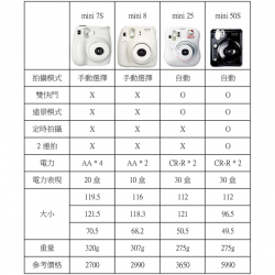 instax mini 幾乎可以說是目前市面上最受歡迎的即可拍廠牌之一,各種機型與不同顏色款大概加起來有幾十款吧~ 也常常讓選擇的女孩們、男孩們都大為傷腦筋。 現在阿輝就教大家怎麼最快的了解各種 instax mini 機型的差異: 快速整理表!阿輝獨家,一看就明瞭 挑選重點一:手動與自動 mini 7S / mini 8 可以列為入門機型,mini 25 / ...... [閱讀更多]