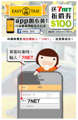 【體驗小黃週】EasyTaxi 和 7-net 相揪送百元折價卷 限量千名
