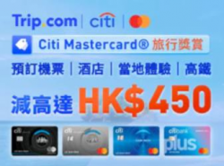 Trip.com X CITI 花旗信用卡有長期的合作關係,有專屬優惠碼供 CITI 信用卡持卡人使用,在 Trip.com 香港網站預訂機票及酒店滿指定金額輸入指定優惠碼並使用 CITI Mastercard 信用卡付款,機票、酒店、高鐵、當地體驗減高達 HK$450! 專屬優惠碼簡介 領取優惠碼 活動時間 截止至2024年9月30日 Trip....... [閱讀更多]