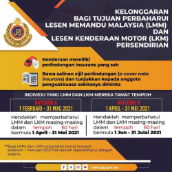 不必再等了!駕照和路稅在2月至3月逾期的,即日起可前往JPJ櫃檯更新;4月至5月逾期的則可在6至7月更新!