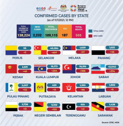 今日(1月11日),一如既往由大馬衛生部所彙報大馬新冠肺炎的最新疫情數據。而截至今日中午12點,大馬一共新增了2232宗確診,2226宗為本地傳播(1769宗為大馬公民;457宗為非大馬公民);剩餘的6宗為境外輸入。此外,共有1006宗痊癒案例,同時新增4起死亡案例。 截至目前為止,...... [閱讀更多]