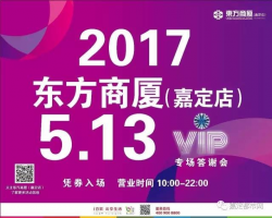 東方商廈(嘉定店)VIP答謝會5.13登場,800張入場券免費開搶!