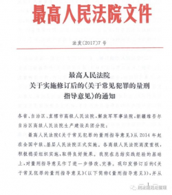 最高法發佈2017年《關於常見犯罪的量刑指導意見》